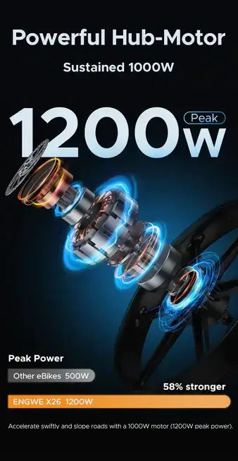 | Hub & Power | Integrated Hub Motor with 1000W power | Spoke Motor with 1200W power | Integrated Hub Motor with 1200W power |