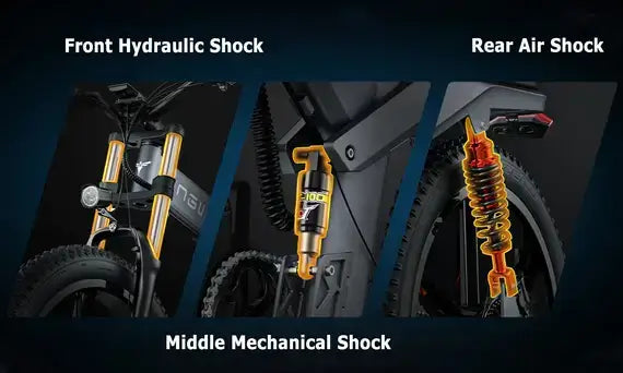 Nuestro sistema de triple absorción de impactos reduce significativamente las sacudidas y los nervios de los recorridos accidentados, lo que garantiza comodidad sin importar el terreno. Es una navegación suave con cada pedaleo.