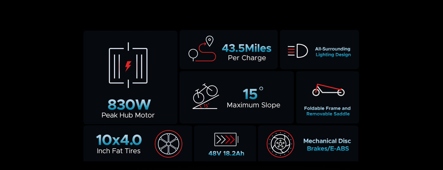 | Range: | 43.5 miles | Bike Weight: | 26.5 KG (58.4 lbs) |